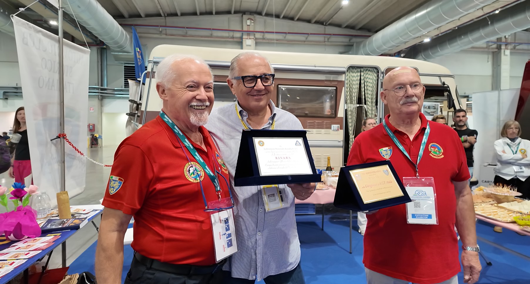 Grandi festeggiamenti in fiera per il 25° anniversario di Rivars, l’associazione che riunisce gli appassionati di veicoli ricreazionali storici. Un traguardo importante, raggiunto grazie all’impegno e alla professionalità che hanno contraddistinto la vita del club sin dalla sua fondazione. Per celebrare l’occasione, il Salone del Camper ha reso omaggio al sodalizio consegnando al presidente Nereo Fusaro una targa ricordo. La cerimonia si è svolta presso lo stand Rivars, alla presenza della brand manager del Salone, Gloria Oppici, che ha personalmente consegnato il riconoscimento insieme al suo team.