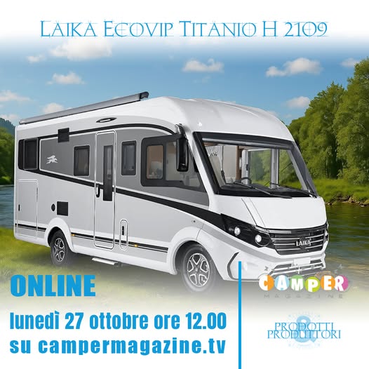 Nel prossimo appuntamento di Prodotti&Produttori analizzeremo il nuovo Laika Ecovip Titanio H 2109. Un motorhome dal design ispirato al mondo automotive, con letti gemelli posteriori, ampia zona giorno, che garantisce spazi ben organizzati e comfort durante ogni viaggio...segnate in agenda!