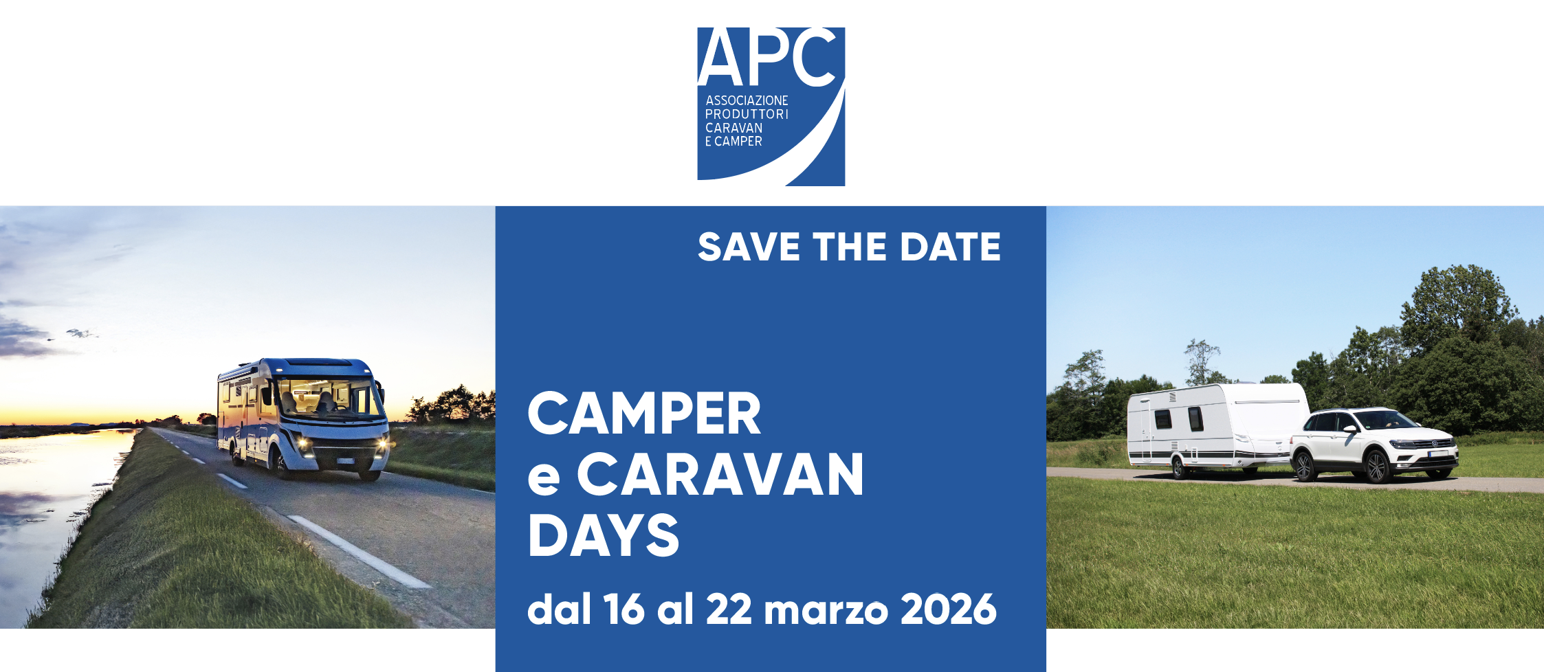 Anche APC – Associazione Produttori Caravan e Camper ricorda che dal 16 al 22 marzo 2026 tornano i Camper Days, sei giorni dedicati a tutti coloro che sognano avventure on the road.i Camper Caravan Days.