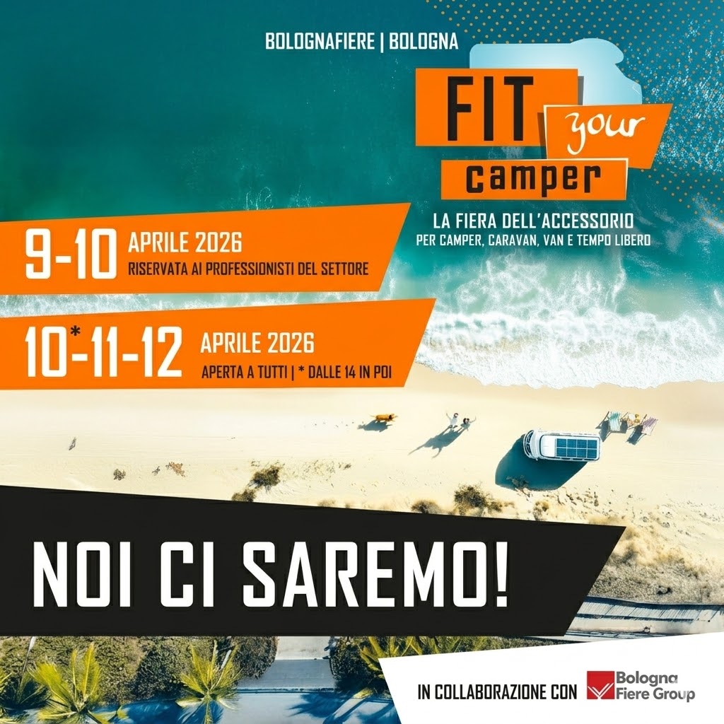 Fin dal suo debutto, Fit Your Camper ha saputo distinguersi per un format originale e apprezzato, in cui protagonisti assoluti sono componentistica, attrezzature e prodotti aftermarket proposti da aziende italiane e internazionali. Ricordiamo inoltre, che da giovedì fino a venerdì mattina le giornate saranno dedicate agli operatori del settore, con un focus su business, networking e aggiornamento tecnico, mentre venerdì 10 aprile, dalle ore 14, le porte si apriranno al grande pubblico fino a domenica 12 aprile, giornata conclusiva dell'evento, offrendo un’esperienza ricca di novità e spunti per tutti gli appassionati del turismo outdoor. Naturalmente ci siamo anche noi ci trovate al Pad.19 Stand A1...vi aspettiamo numerosi!!!